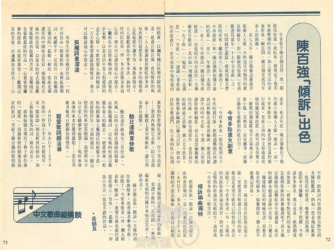 中文歌曲縱橫談 – 陳百強「傾訴」出色 (By 岳韻良)