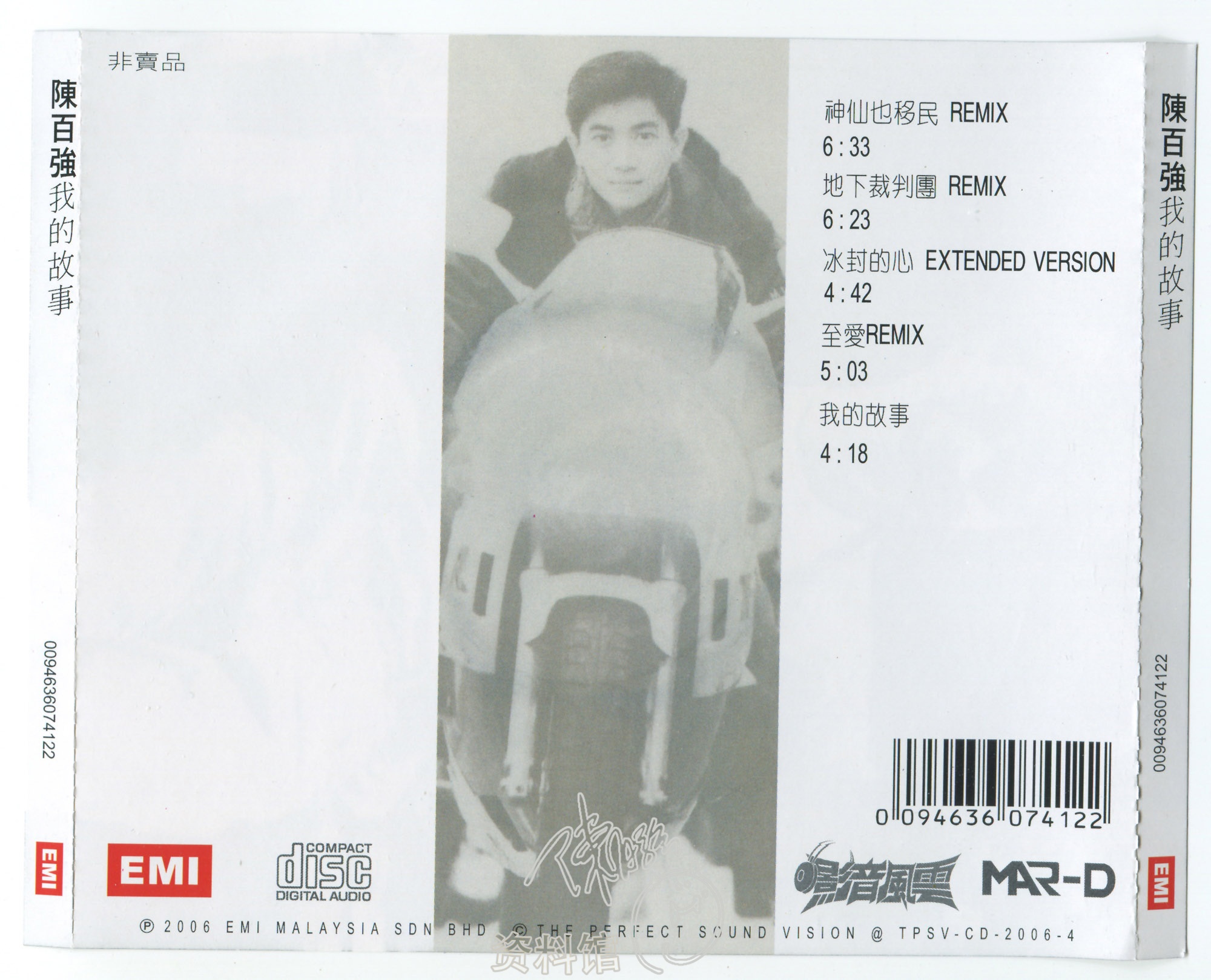 随本书附送的《陈百强Remix我的故事》,顾名思义,集中力量揽罗Remix歌曲,DMI时期的Remix佳作不少,所以专集发表之。