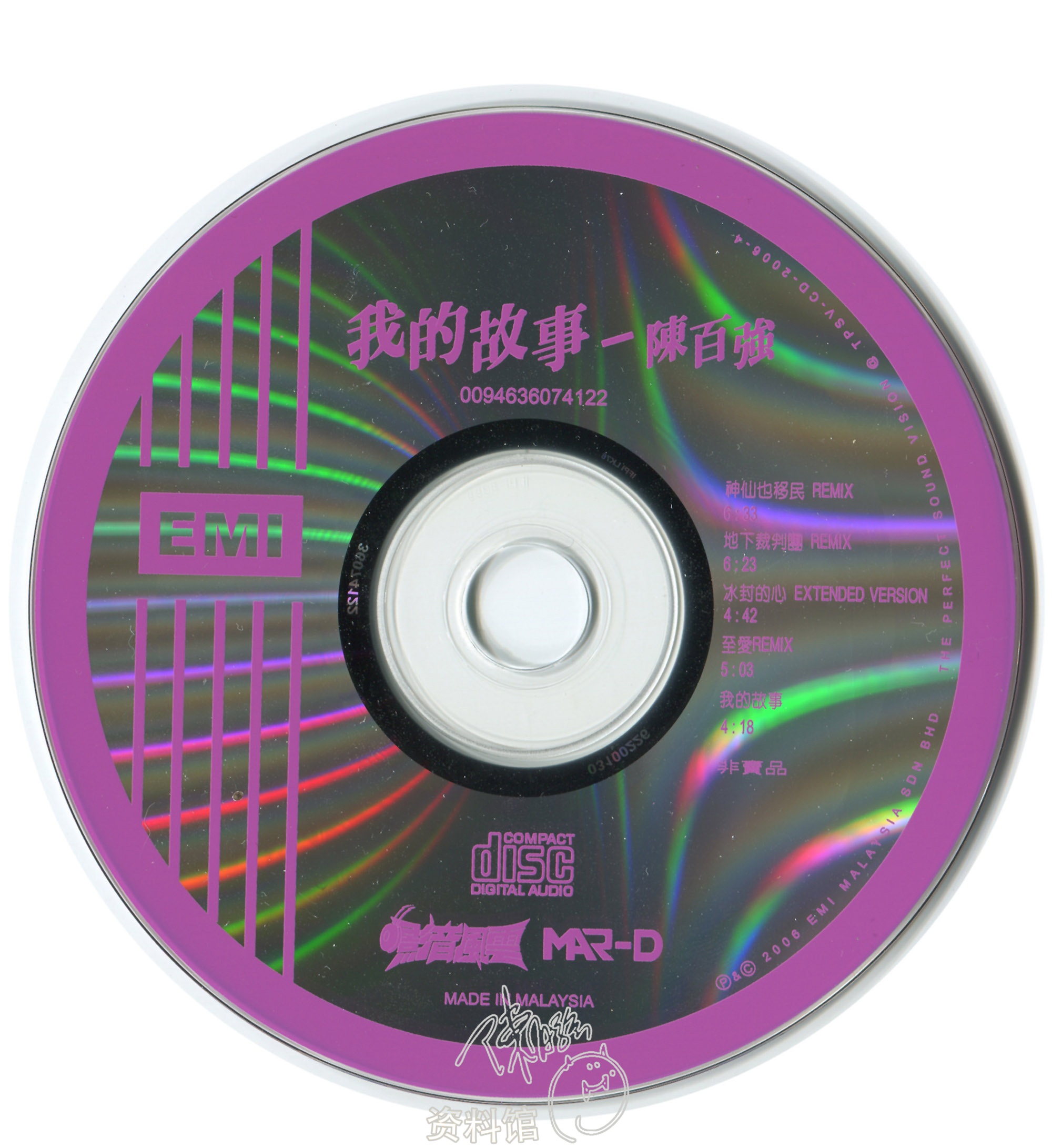 两张三寸CD均是EMI(DMI)的出口,其中《留住夕阳》有一首《偏偏喜欢你》的纯音乐版(也有收录在DMI在八九年发行的《陈百强浪漫音乐集》),另一张三寸CD则有《神仙也移民Remix》(也有收录在EMI在八八年发行的杂锦碟及图案黑胶之中),起而效尤,收藏价值而言,二者不相伯仲。