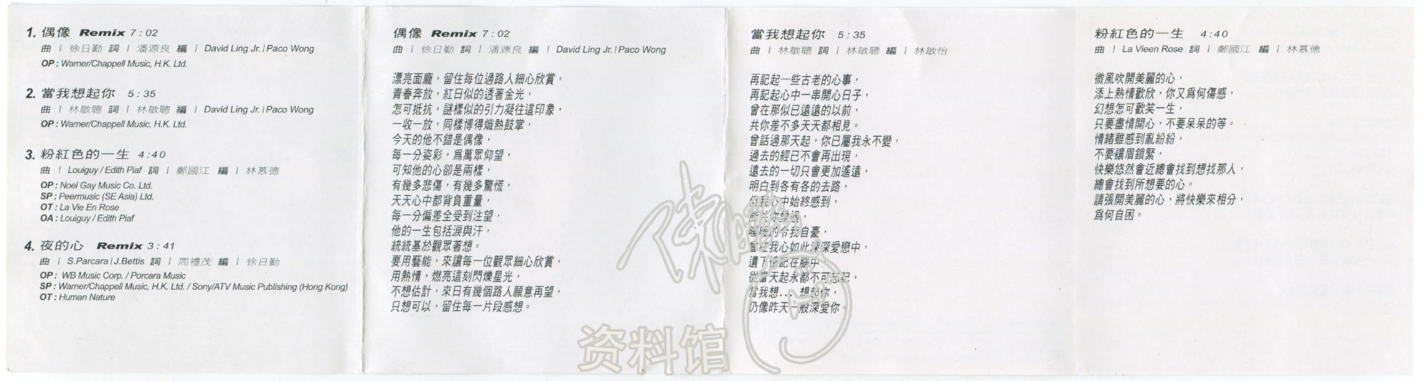 以这个观点论,可见送交国外或特别为某国发行的软件一定值钱,因为它可能只是一个场合,或一个试验性产物,比方说陈百强的《Tell Me What I Do》,林忆莲专为英国市场发行的《Peace of mind》单曲,梅艳芳的两张日文细碟等等。