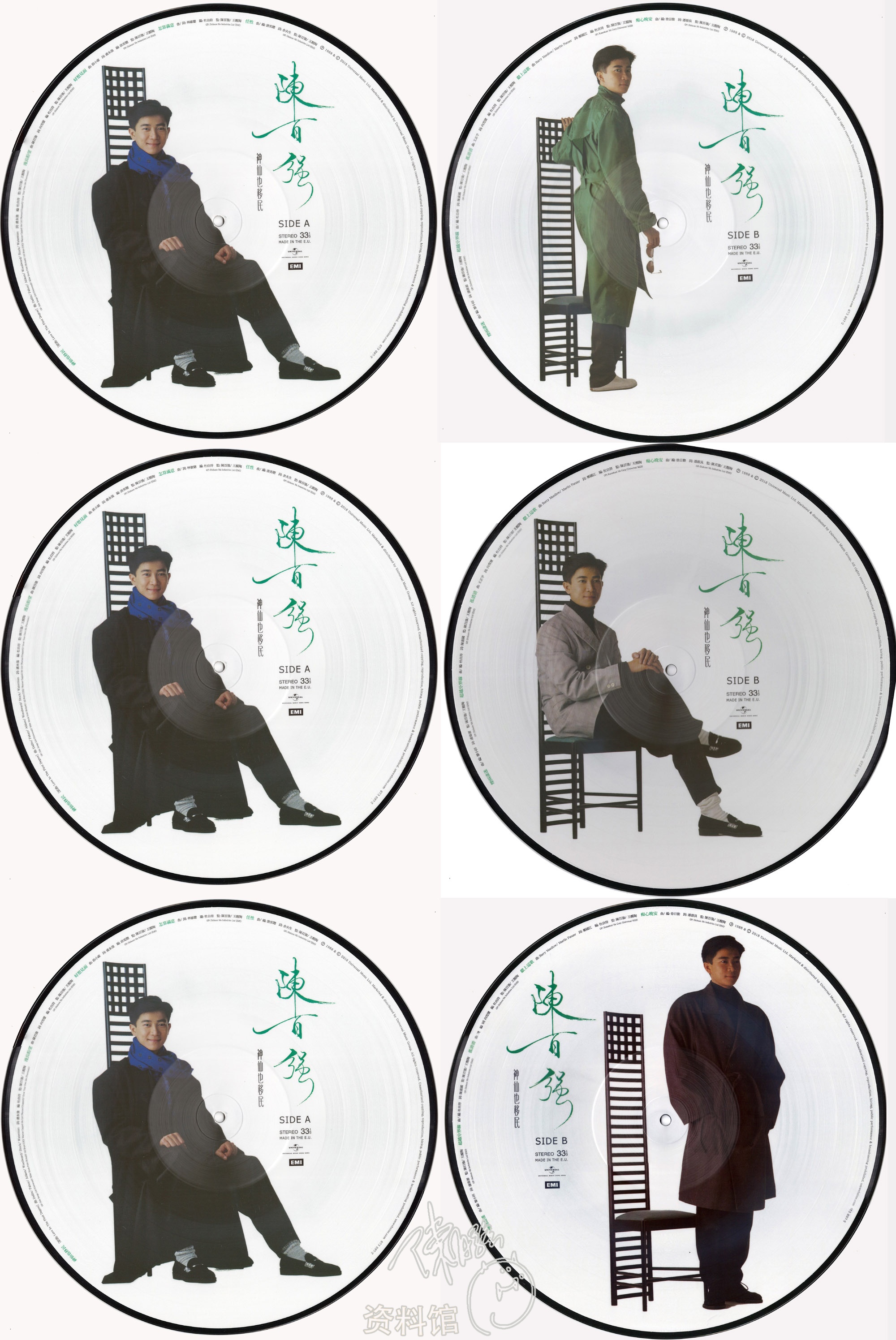 最令粉丝欢欣雀跃的就是见到偶像的新唱片出版了!神仙30周年纪念彩胶,一套共有三款,而三款彩胶的Side A封面是相同的,只有Side B是不相同的,可供歌迷选择,侧标颜色分以红、蓝、绿以示区别。