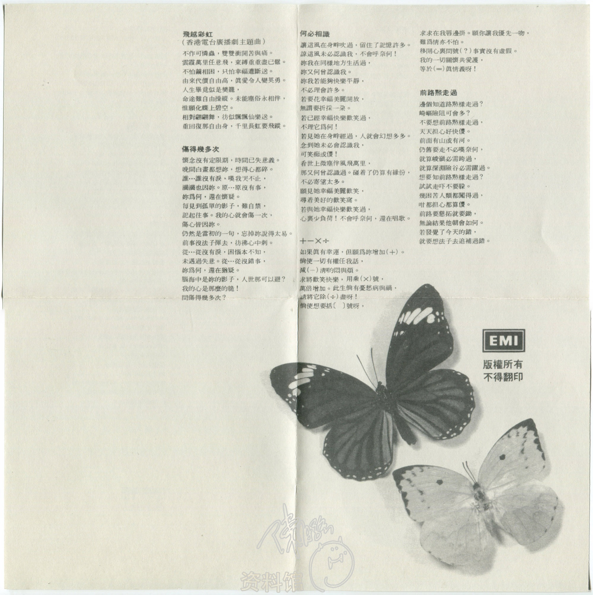 我心裡在唱……換上新氣象,如墮雲裡如在夢裡飛翔……「我心裡在唱」是一份衝出煩憂之後,豁然開朗的喜悅心情;不知是否因為「我心裡在唱」與「飛越彩虹」,這兩首歌的作曲與編曲都是鍾肇峰,所以有孖生姊妹感覺,聽歌的時候都要連著一起聽。