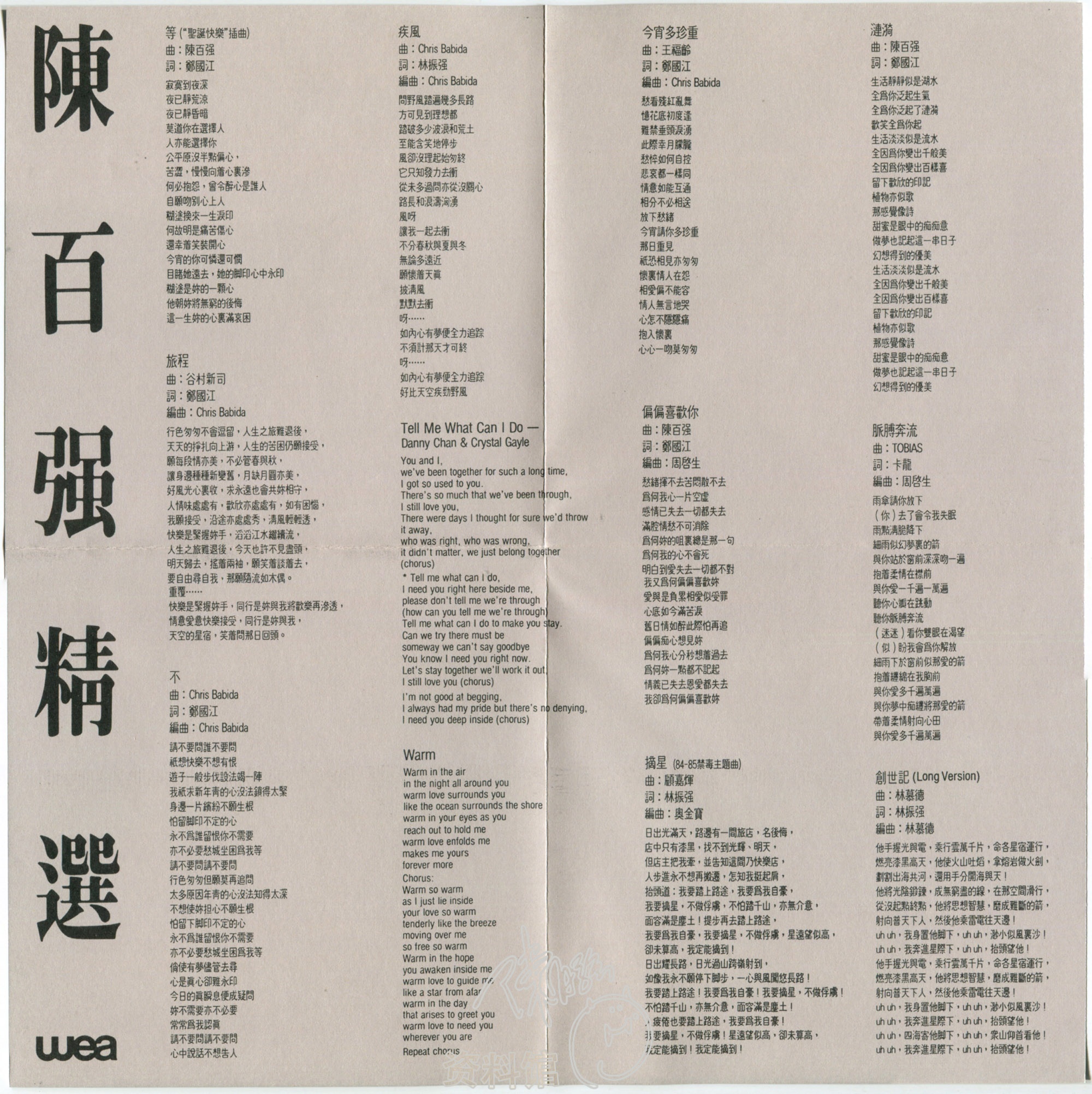 陳百強是個簡約主義者,他並不刻意賣弄歌唱技巧,感情的流露恰到好處,在「Warm」他的演繹如夏夜裡的清風,自然純淨唯美,而他的歌橫跨數十年仍有一股清新的詩意。