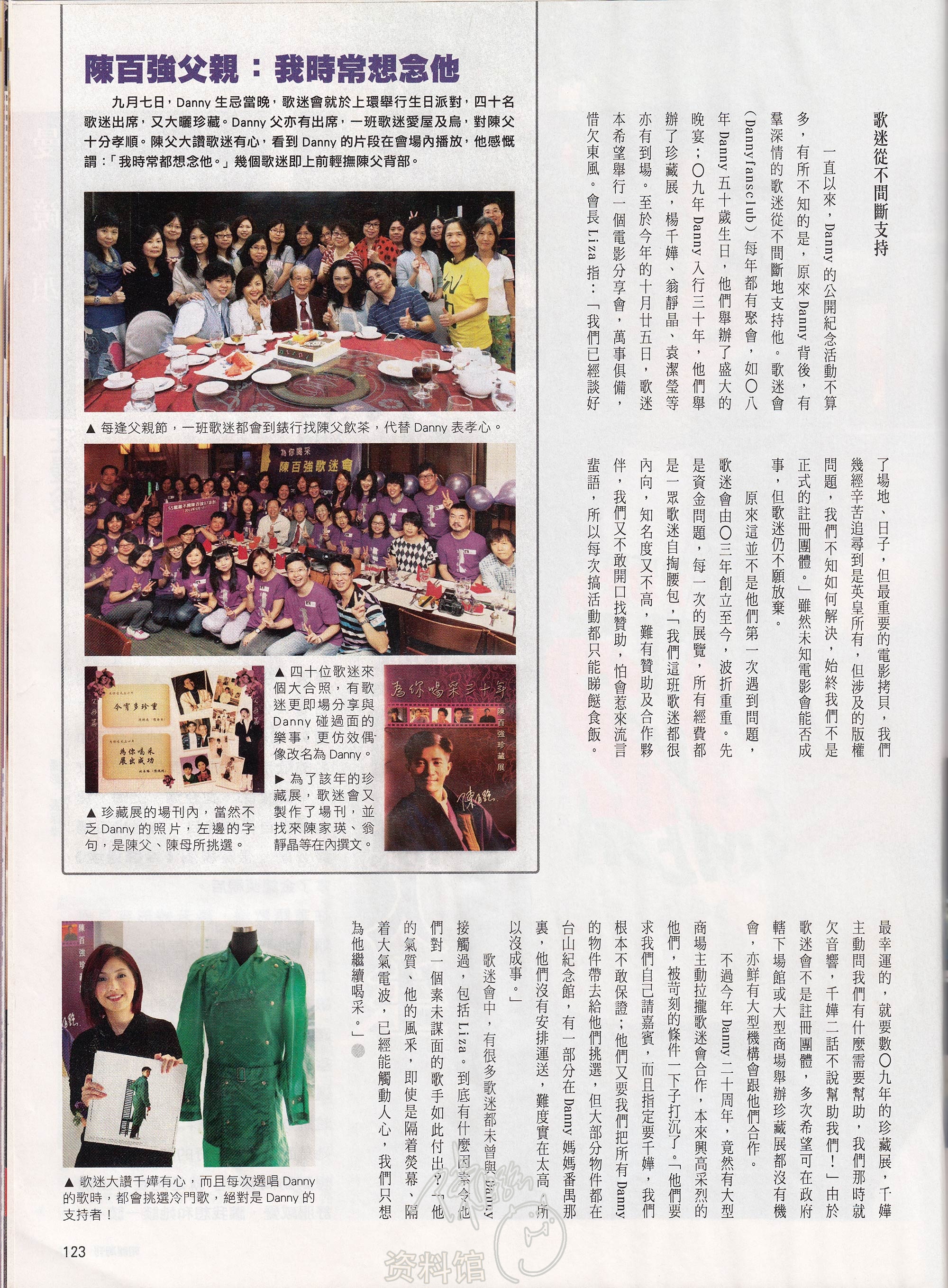 九月七日,Danny生忌當晚,歌迷會就於上環舉行生日派對,四十名歌迷出席,又大曬珍藏。Danny父亦有出席,一班歌迷愛屋及烏,對陳父十分孝順。陳父大讚歌迷有心,看到Danny的片段在會場内播放,他感慨謂:「我時常都想念他。」幾個歌迷即上前輕撫陳父背部。