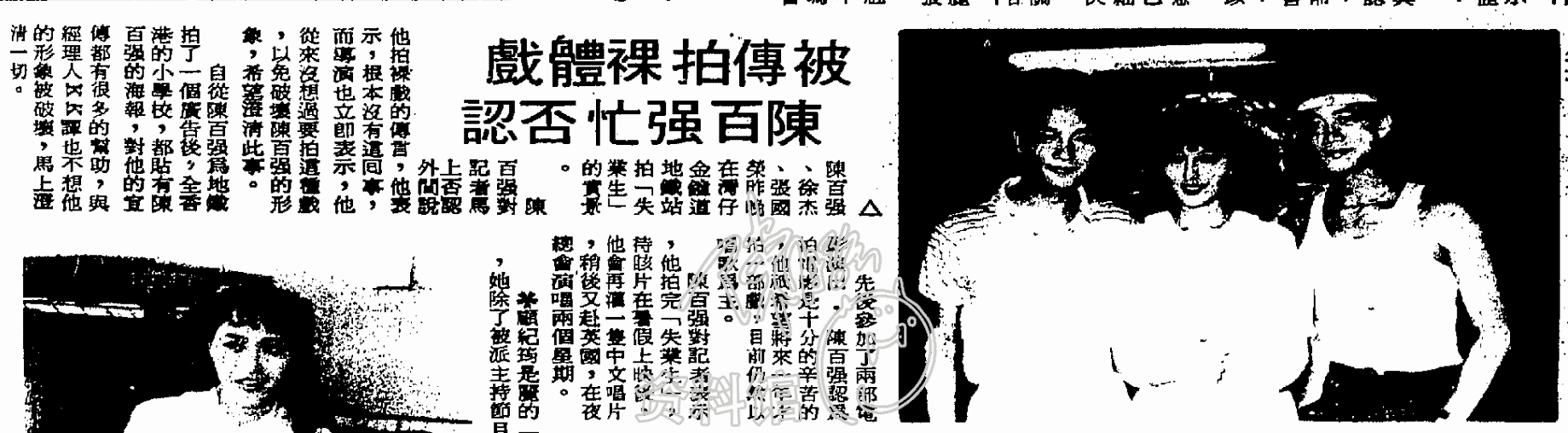 陳百強對記者馬上否認外間說他拍裸戲的傳言,他表示,根本沒有這回事,而導演也立即表示,他從來沒想過要拍這種戲,以免破壞陳百強的形象,希望澄清此事。