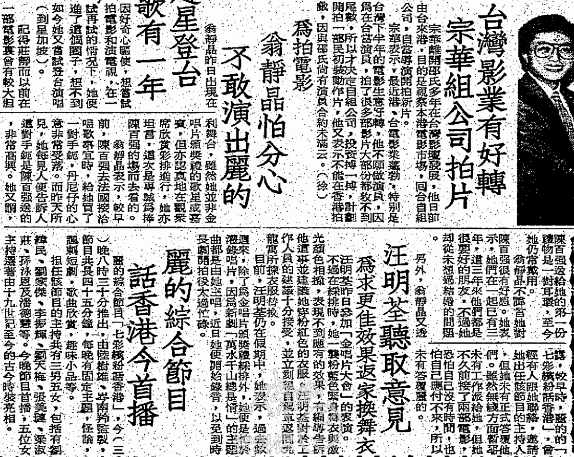 翁靜晶不諱言她對陳百強很有好感。她表示,她們在一起已有三年,這三年来他們都是很要好的朋友,不過她却從未想過结婚的問題。