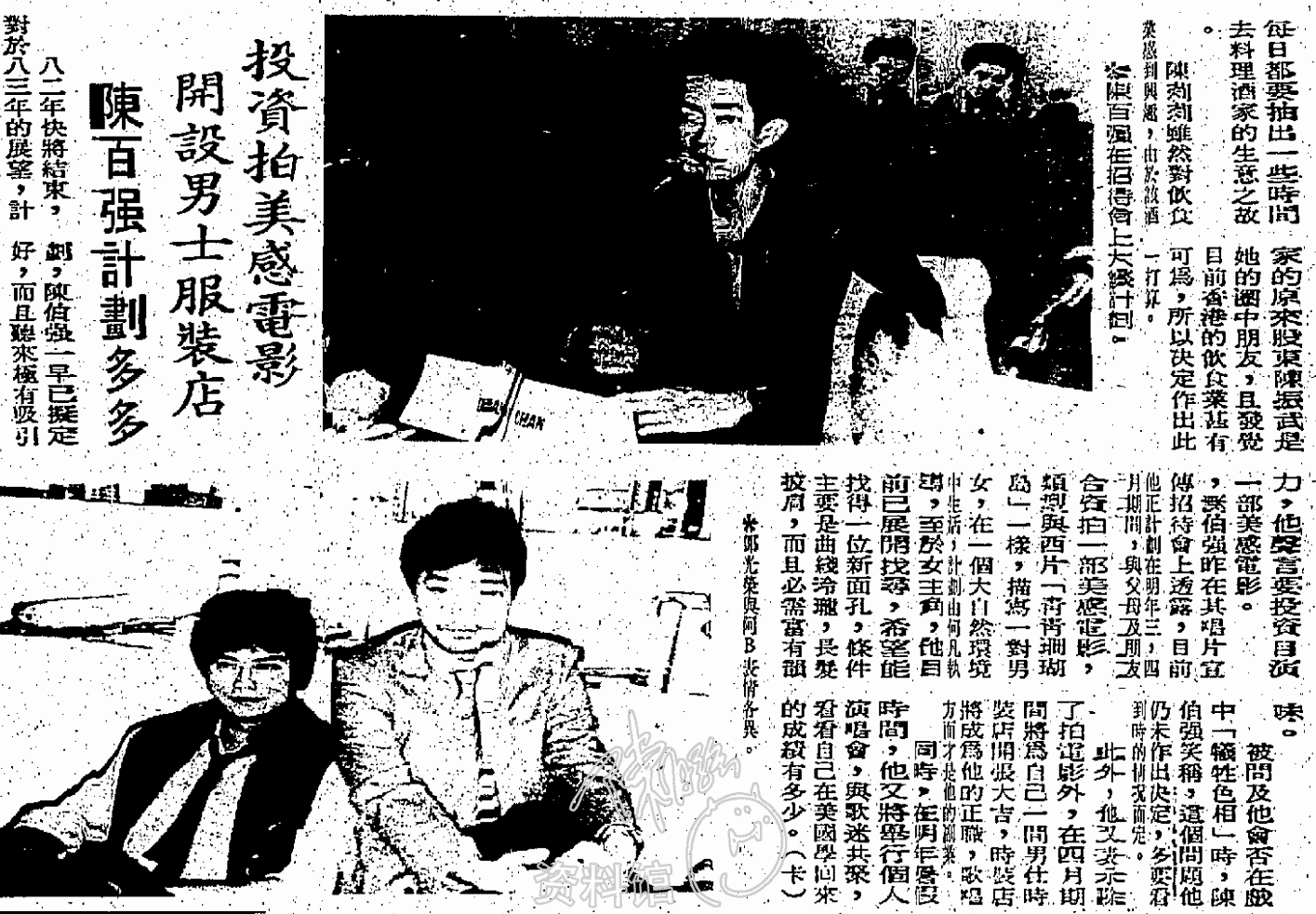 八二年快將結束,對於八三年的展望,計劃,陳百強一早已擬定好,而且聽來極有吸引力,他聲言要投資自演一部美感電影。