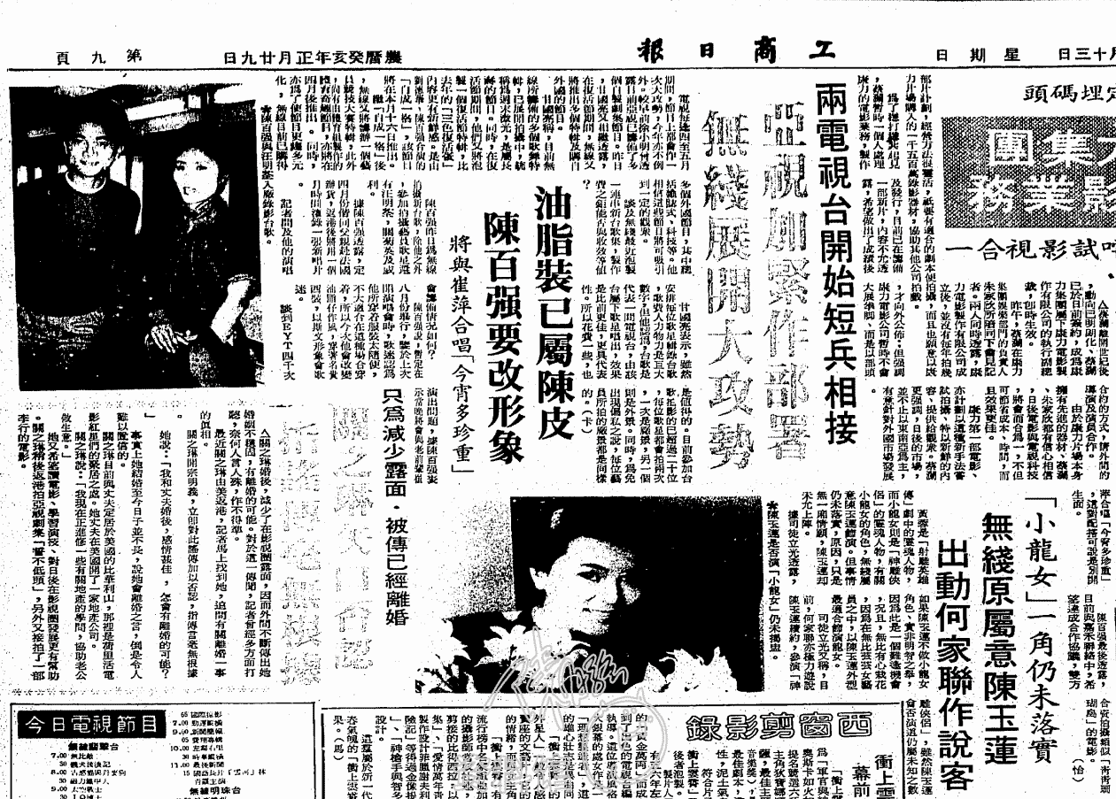 陳百強昨日爲無線拍攝新台歌,除他之外,參加拍攝藝員歌星還有汪明荃,關菊英及戚利。