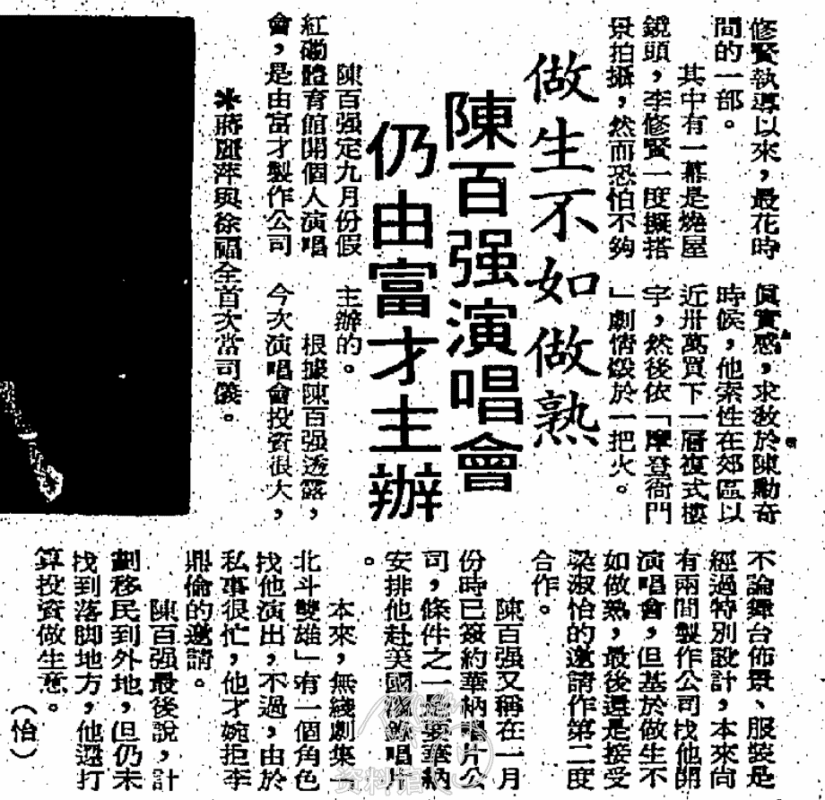 陳百強定九月份假紅磡體育館開個人演唱會,是由富才製作公司主辦的。