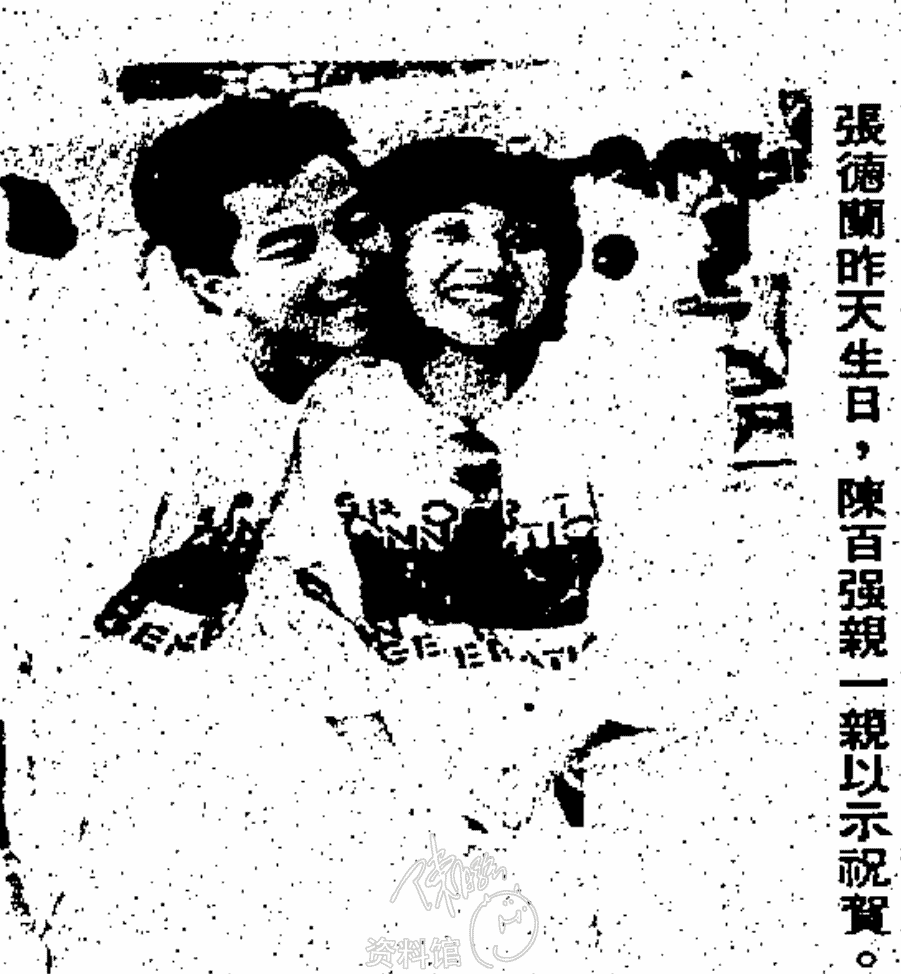 張德蘭昨天生日,陳百強親一親以示祝賀。