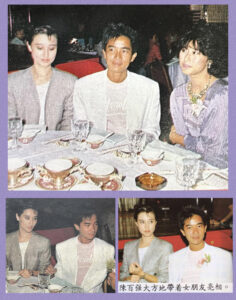 陳百強昨日偕同女友出席港台的招待會,隨即成爲記者爭相訪問的對象,一向大方的陳百強,也表現得很害羞,初時還拒絕與女友一起拍照,但最後也只好大方在一起,當問及與女友相識一事時,陳百強只謂乃私人事,不欲多談,不過,並作了簡短的介紹,女友名叫歌蓮娜,樣貌甜美,與翁靜晶各有幾分相像。