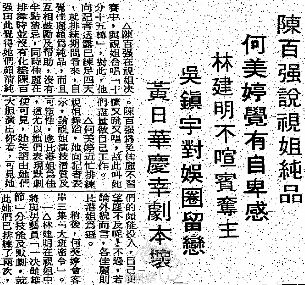 1986.08.20 陳百強說視姐純品 華僑日報 2024-09-142022-12-12 作者 lh平安陳百強說視姐純品△陳百強在視姐決賽中,與視姐合唱「十分十五轉」,對此,他向記者透露已練足四天,就排練期間看來,自覺佳麗頗為純品,而且互相鼓勵及幫助,沒有半點猜忌,同時佳麗在排舞時並沒有化妝陳百強由此覺得她們頗清純。陳百強爲免佳麗不習慣又跳又唱,故此叫她們盡量做自己工作。资料提供:極猫文字录入和校对:飞飞、挚爱百强陈