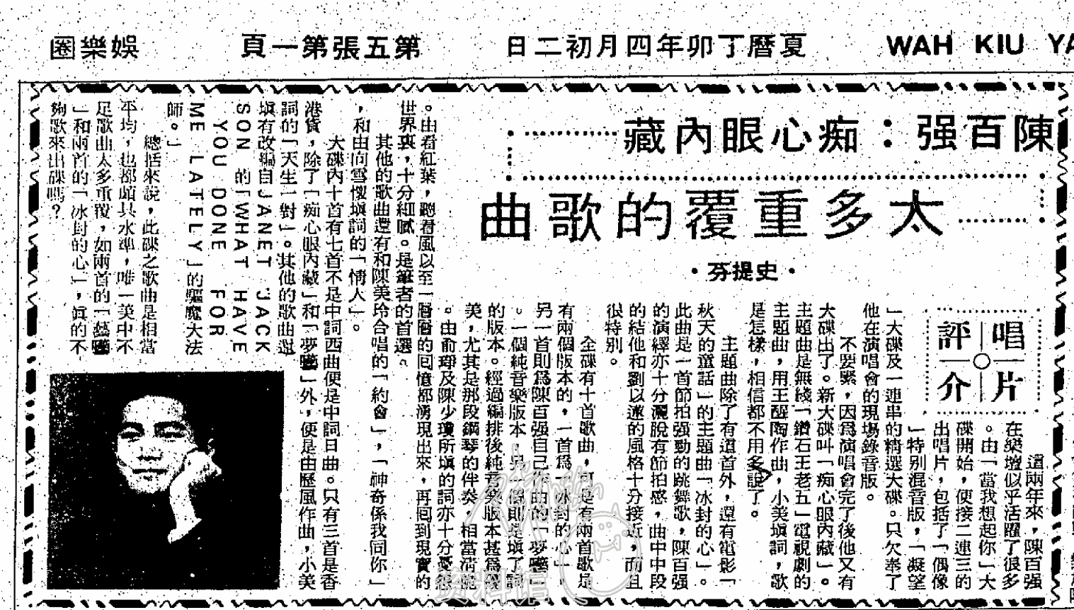 陳百强︰痴心眼內藏 碟評 華僑日報, 1987-04-29