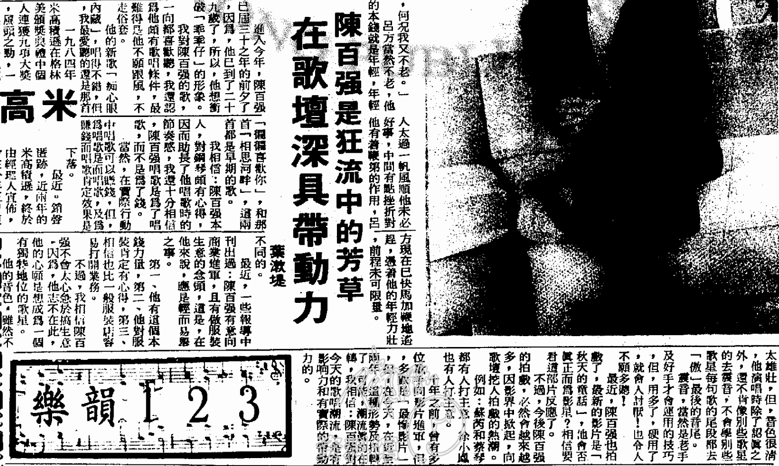 不過,我相信陳百強不會太心急于搞生意,因為,他志不在此,他的心願是想成為一個有獨特地位的歌星。