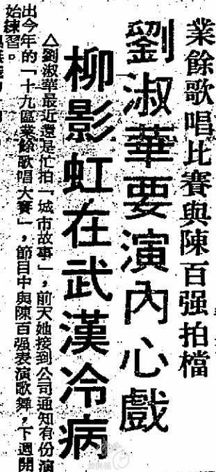 1987.12.13 劉淑華 業餘歌唱比賽與陳百强拍檔 華僑日報 2024-09-152022-12-14 作者 lh平安業餘歌唱比賽與陳百強拍檔 劉淑華要演內心戲△劉淑華最近還是忙拍「城市故事」,前天她接到公司通知有份演出今年的「十九區業餘歌唱大賽」,節目中與陳百強表演歌舞,下週開始練習。资料提供:極猫文字录入和校对:飞飞、挚爱百强陈