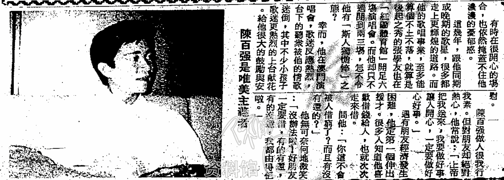 陳百強做人很我行我素。但對朋友却絕對熱心,他常說:「上帝把我送來,我要做好事讓人開心,一定要做好心好事。」