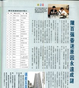 陳百強早於昏迷前已將******掉,居住之所亦只是租用而******母透露丹尼的積蓄約有港幣******元。
