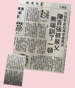 陳百强的父親有次遇過啼笑皆非的事,連他父親的朋友都擺烏龍,在報紙上看到陳百祥黃杏秀拍拖的消息,就對他父親說:「陳老先生,恭喜你呀,黃杏秀原來是你未來媳婦,這個女孩子不錯,聽講入電視台之前是在浸會書院讀書的,是個身家清白的好孩子,你的兒子眞有眼光。」