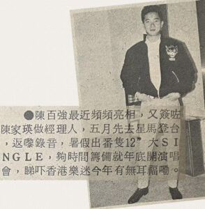 首页 » 期刊报纸扫描 » 1986期刊 » 1986.04.06 新聞一則1986.04.06 新聞一則 2026-03-28 作者 feifei1986年4月新聞一則陳百最近頻頻亮相,又簽咗陳家瑛做經理人,五月先去星馬登台,返嚟錄音,暑假出番隻12″大SINGLE,時間籌備就年底開演唱會,睇吓香港樂迷今年有無耳福嘞。资料来源:FB马高