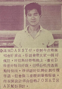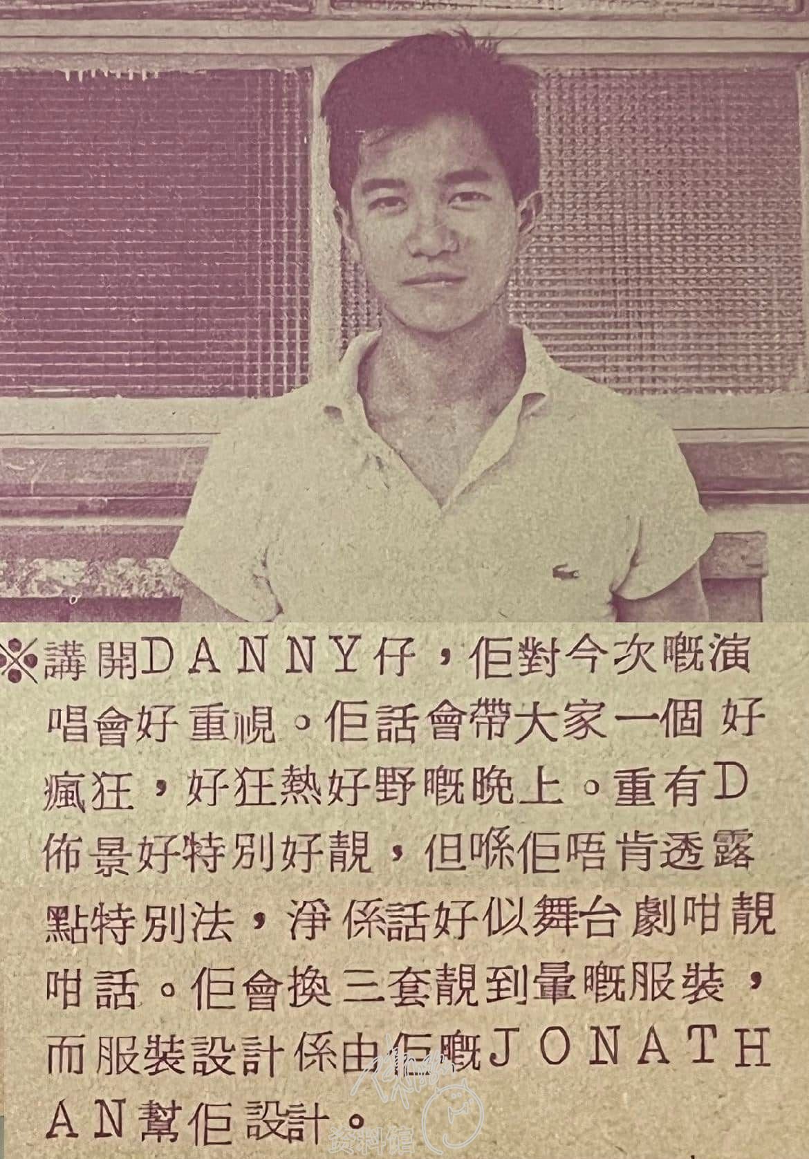首页 » 期刊报纸扫描 » 1984期刊 » 1984.11 1984年11月剪报1984.11 1984年11月剪报 2026-03-31 作者 feifei1984年11月剪报講開DANNY仔,佢對今次演唱會好重視。佢話會帶大家一個好瘋狂,好狂熱好野嘅晚上。重有D佈景好特別好靚,但喺佢唔肯透露點特別法,淨係話好似舞台劇咁靚咁話。佢會換三套靚到暈嘅服裝,而服裝設計係由佢嘅JONATHAN幫佢設計。资料来源:FB马高