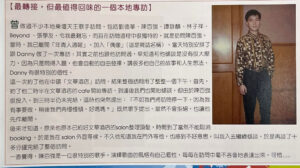 當時,我已離開「年青人週報」,加入「偶像」(這是雜誌名稱),當天特別安排了跟Danny做了一次專訪:其實之前也跟他訪問過,早知道和他傾談是沒有很大壓力,因為只是問得入題,他會自動的自由發揮,講很多他自己的故事和人生想法,Danny有很特別的個性。