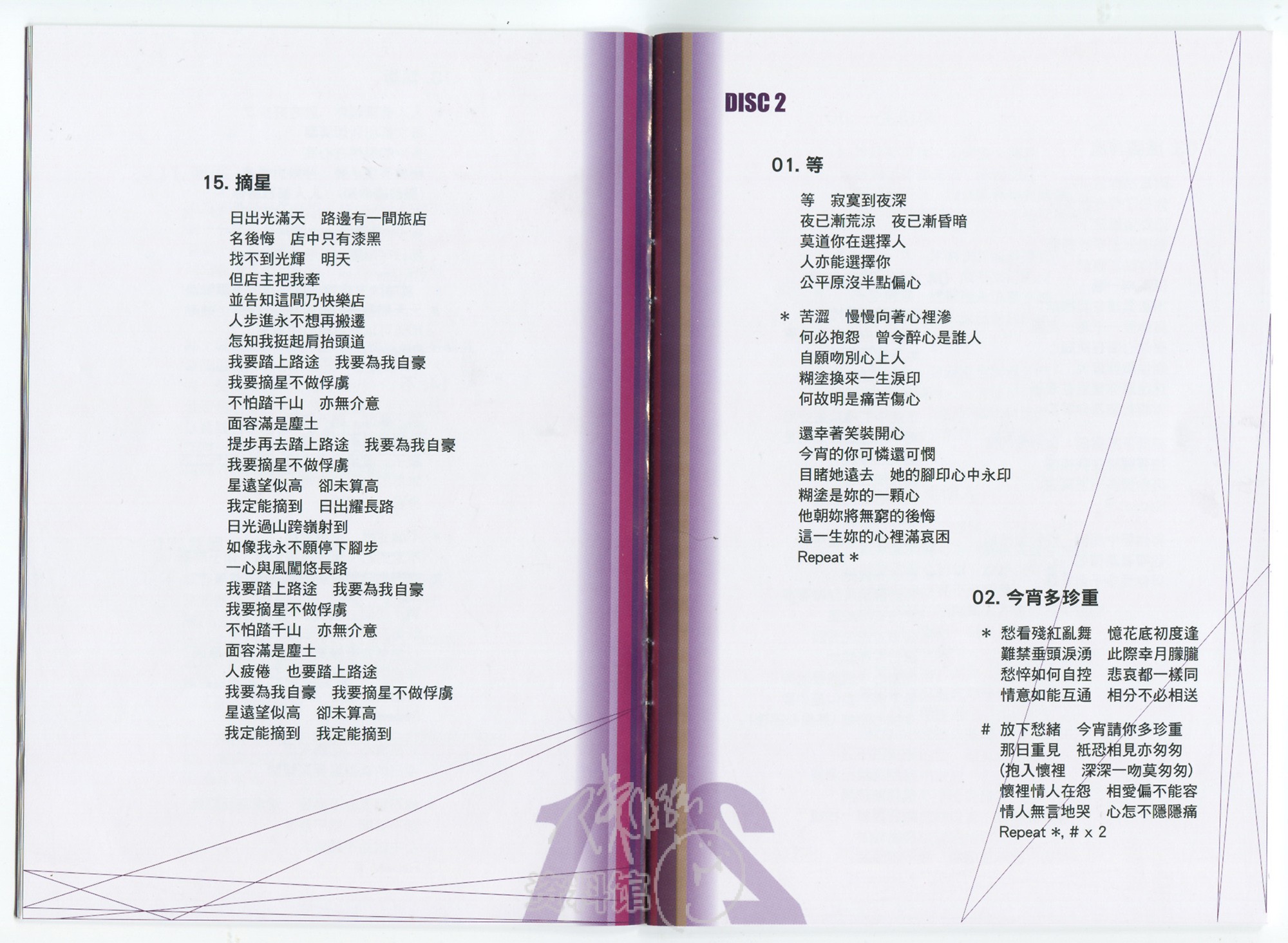 15.摘星 (1984年第29,30,31周香港电台中文歌曲龙虎榜周冠军)