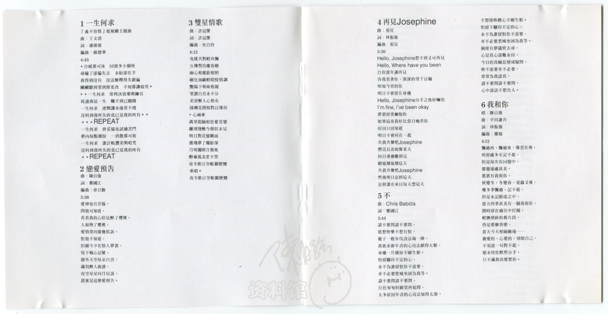 1.一生何求 (1989年第19周香港电台中文歌曲龙虎榜周冠军)