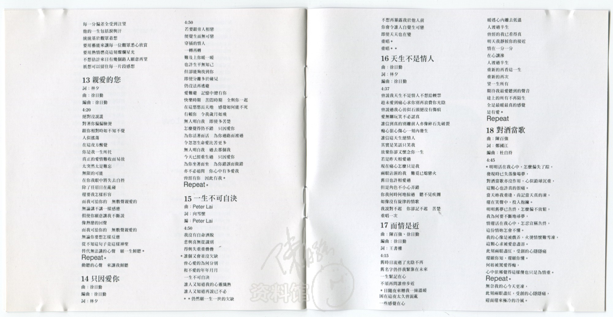 13.只因爱你 (1991年第38周香港电台中文歌曲龙虎榜周冠军)