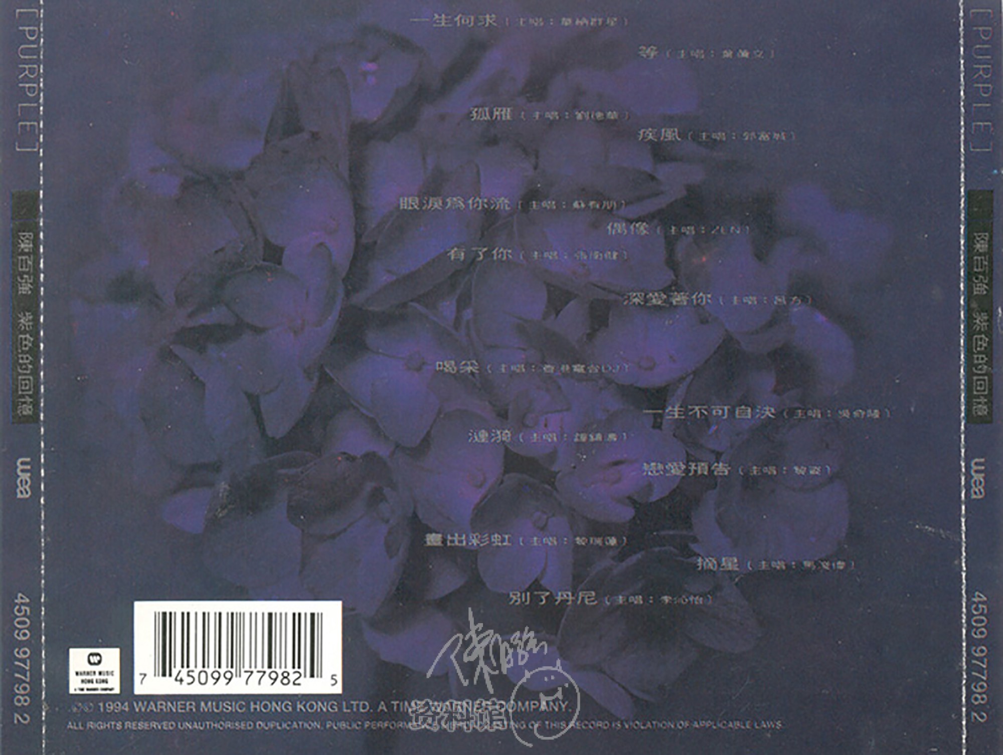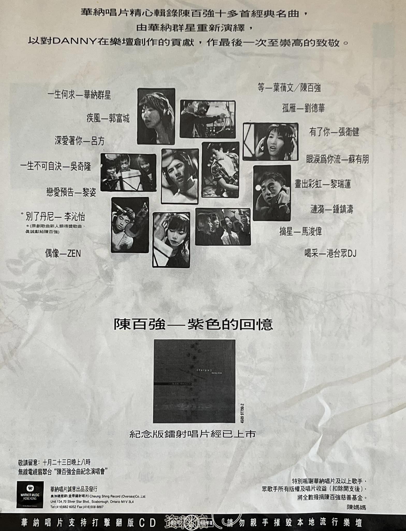 1994年10月上旬,WEA推出紀念大碟「紫色的回憶」,唱片宣传。
