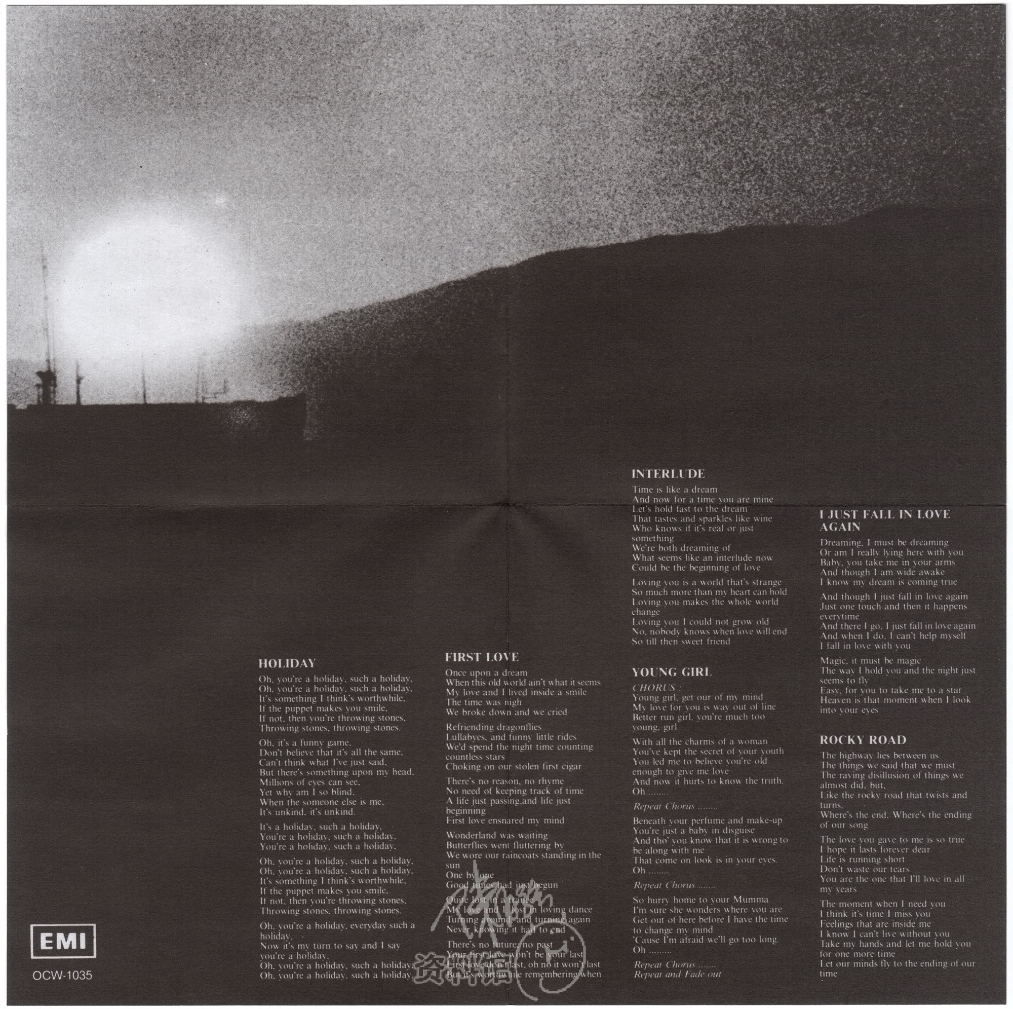 2014.03.28 环球 First Love (环球复黑王‧百代篇) 2017-07-132015-06-28 作者 feifei回到旧版专辑歌词专辑内曲目:1.Holiday 2.First Love 3.Interlude 4.Yound Girl 5.I Just Fall In Love Again 6.Rocky Road 7.眼泪为你流 (1979年第46周香港电台中文歌曲龙虎榜周冠军) 8.童年乐趣多 9.雨过天晴 10.恩情 11.留住夕阳 12.两心痴 专辑扫描:Josephine (YY)