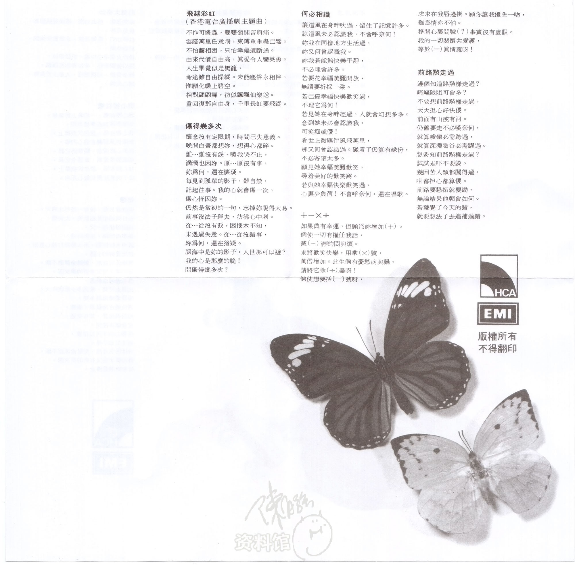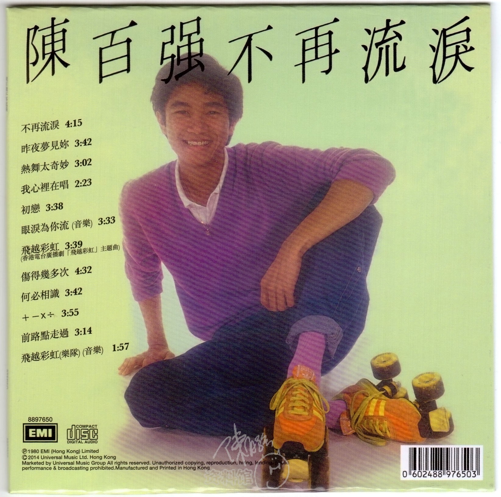 首页 » 大碟欣赏 » 大碟1993年后出版 » 2014.10.31 环球 不再流泪.飞越彩虹 (环球复黑王‧百代篇)2014.10.31 环球 不再流泪.飞越彩虹 (环球复黑王‧百代篇) 2017-07-132015-06-28 作者 feifei回到旧版专辑歌词专辑内曲目:不再流泪 (1980年第25周香港电台中文歌曲龙虎榜周冠军) 昨夜梦见你 热舞太奇妙 我心里在唱 初恋 眼泪为你流(音乐) 飞越彩虹 (1980年21,22周香港电台中文歌曲龙虎榜周冠军) 伤得几多次 何必相识 +-×÷ 前路点走过 飞越彩虹(音乐) 专辑扫描:Josephine (YY)