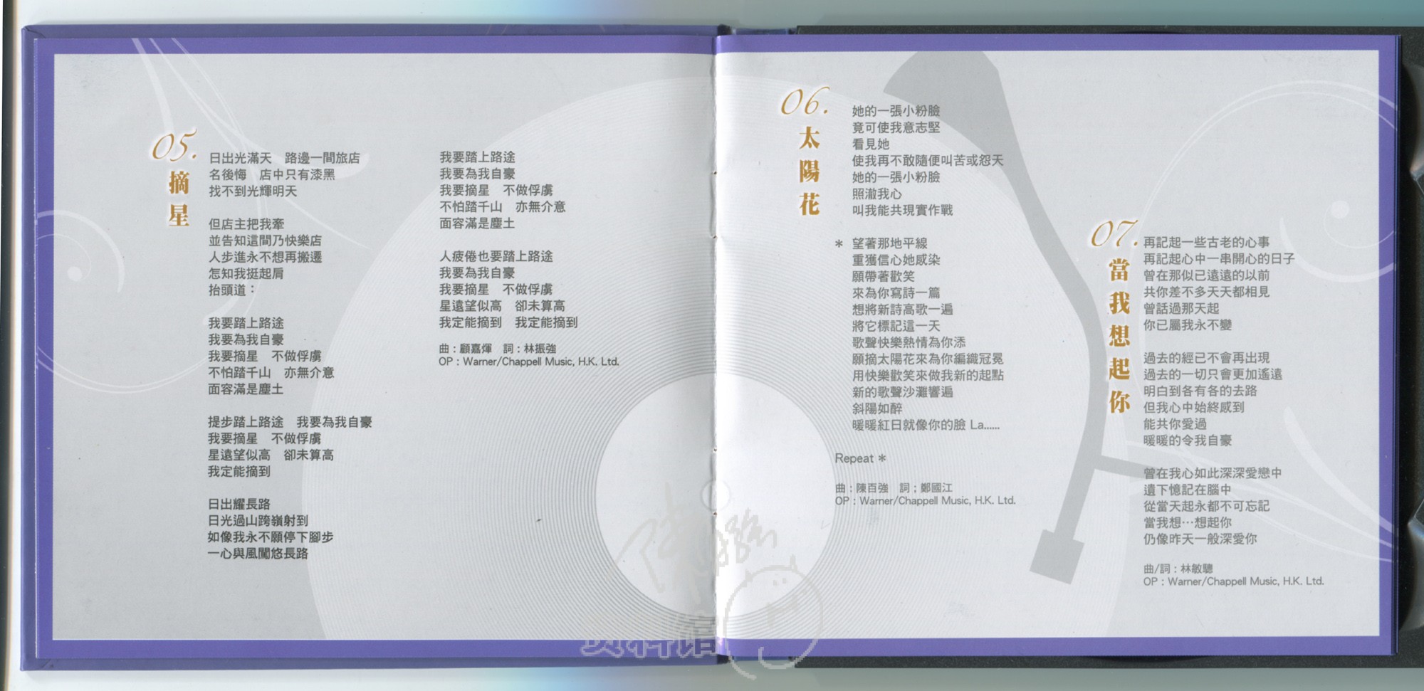 5.摘星 (1984年第29,30,31周香港电台中文歌曲龙虎榜周冠军)