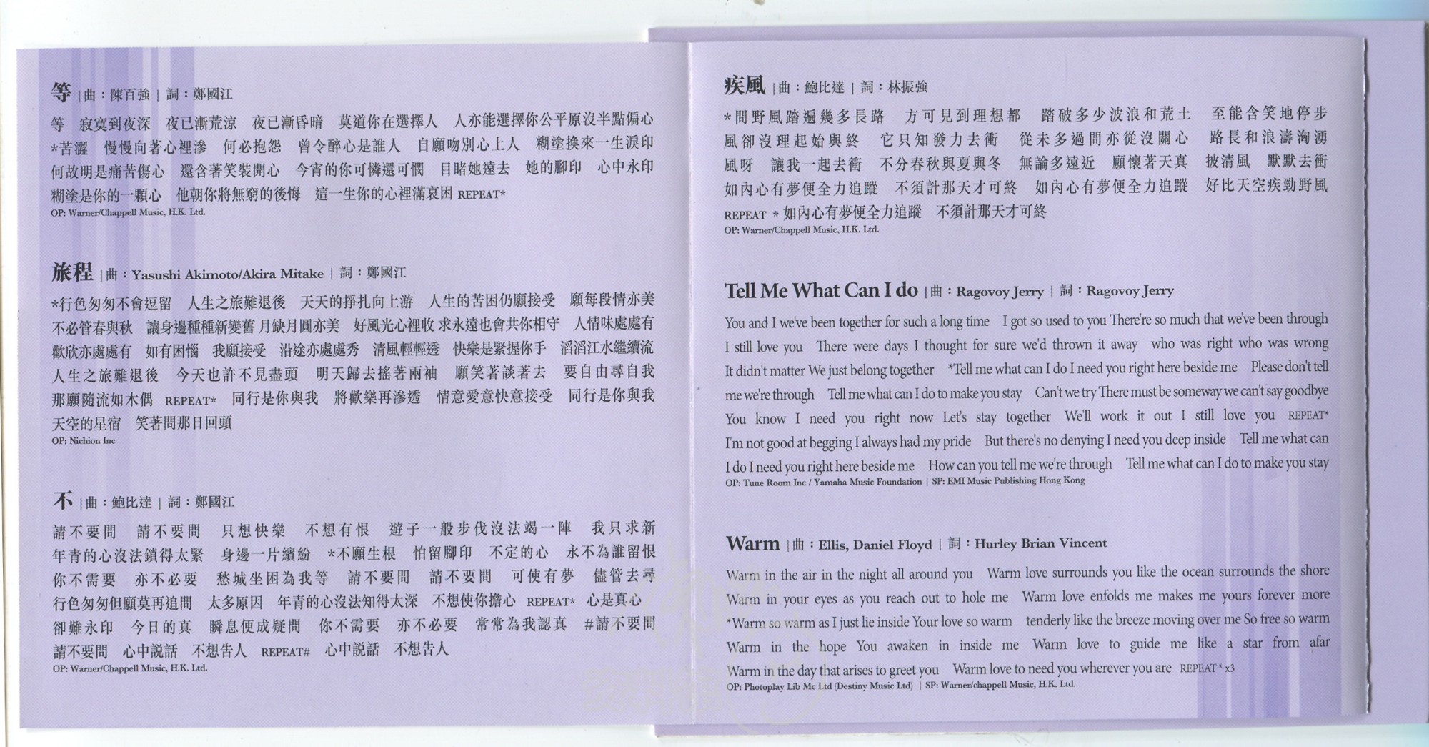 1.等 (1985年第4;5周香港电台中文歌曲龙虎榜周冠军)