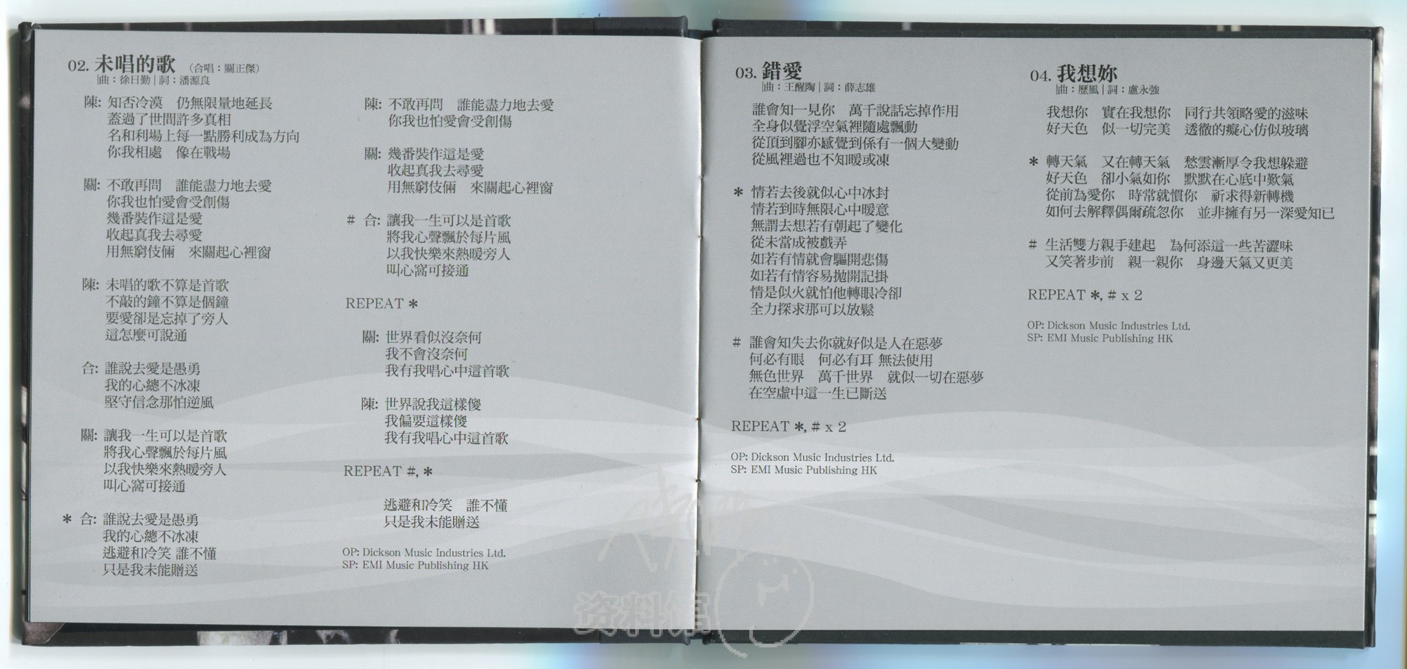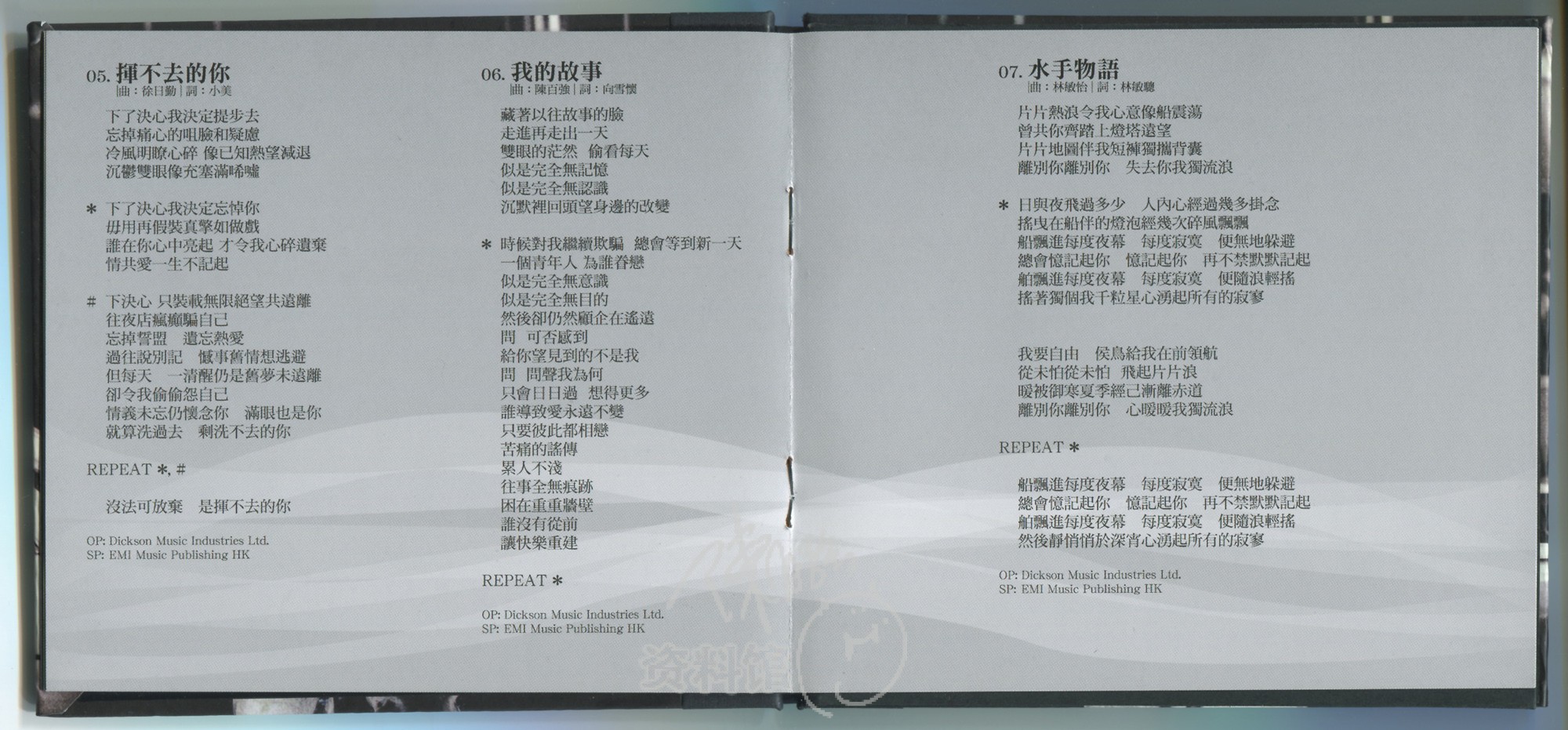 2012 DMI梦里人-封面封底 2012 DMI梦里人-CD碟面 2012 DMI梦里人-歌词1 2012 DMI梦里人-歌词2 2012 DMI梦里人-歌词3 2012 DMI梦里人-歌词4 2012 DMI梦里人-歌词5 2012 DMI梦里人-歌词6 专辑扫描:feifei7461