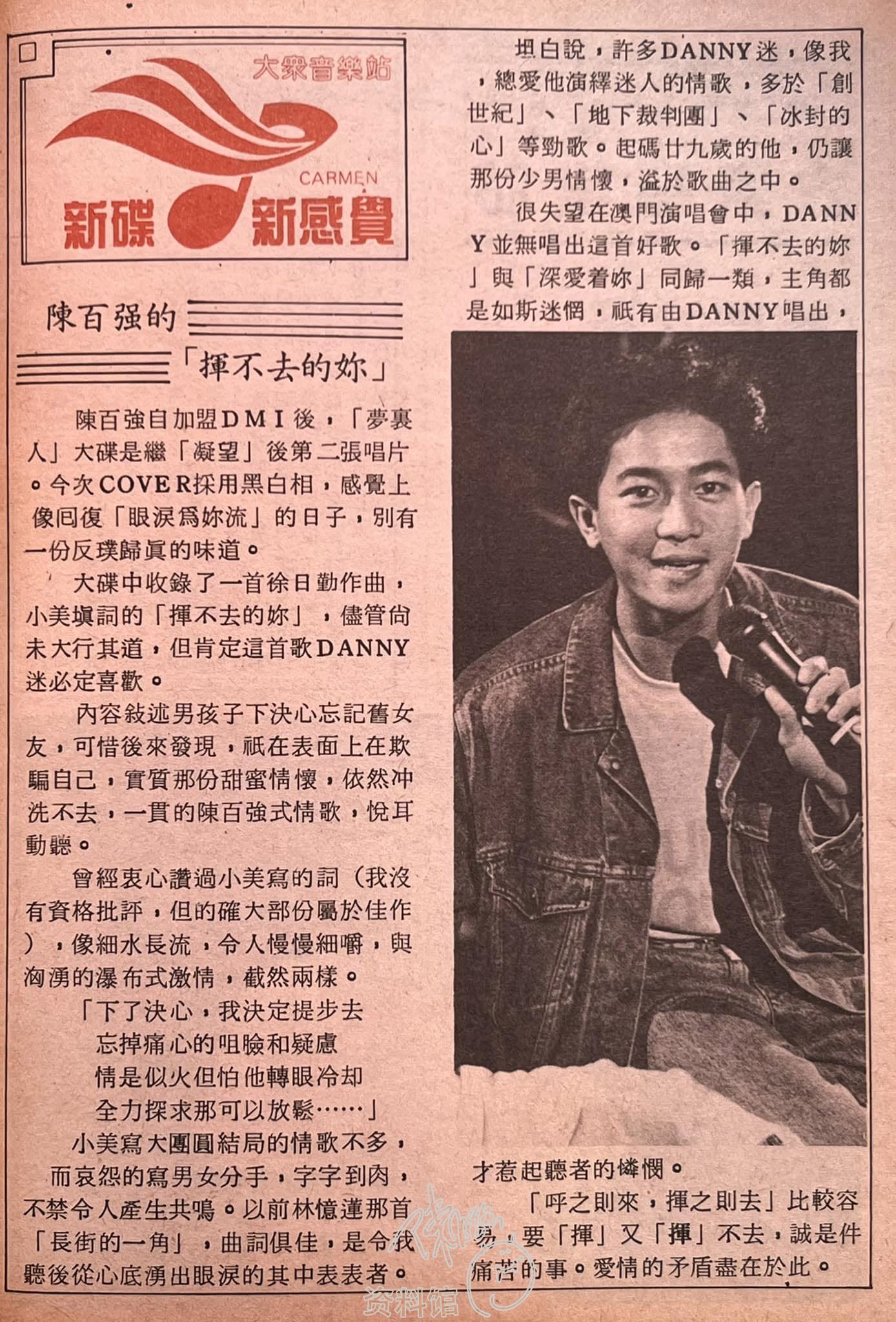 坦白說,許多DANNY迷,像我,總愛他演繹迷人的情歌,多於「創世紀」、「地下裁判團」、「冰封的心」等勁歌。起碼廿九歲的他,仍讓那份少男情懷,溢於歌曲之中。