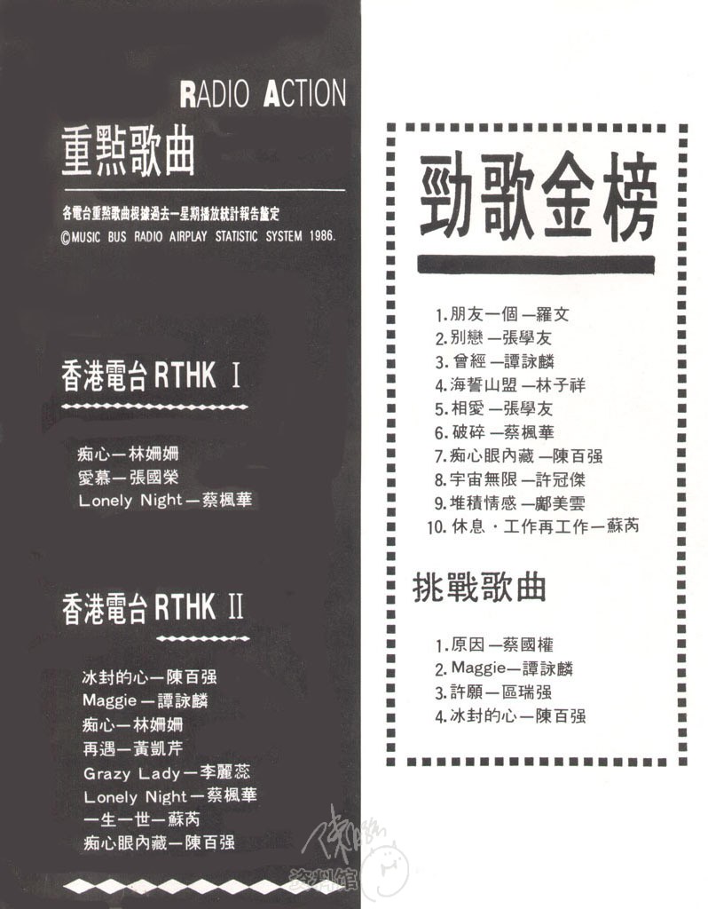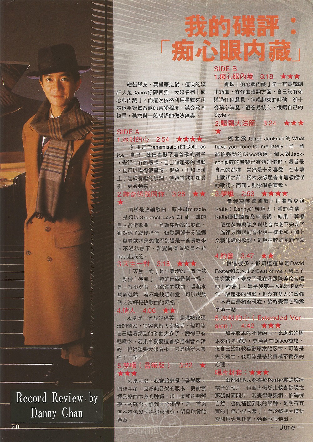 继张学友、蔡枫华之后,这次的碟评人是Danny仔陈百强,大碟名称「痴心眼内藏」。而这次依然利用星号来代表歌手对每首歌的喜爱程度,满分为四粒星,务求与一般碟评的做法无异。