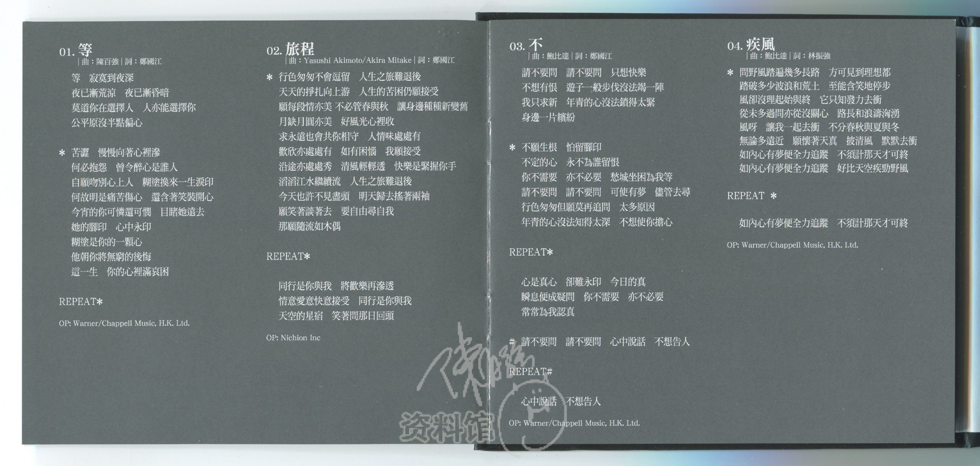 1.等(1985年第4、5周香港电台中文歌曲龙虎榜周冠军)