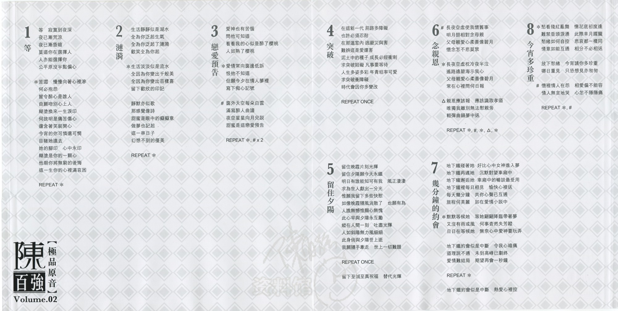 1.等(1985年第4、5周香港电台中文歌曲龙虎榜周冠军)