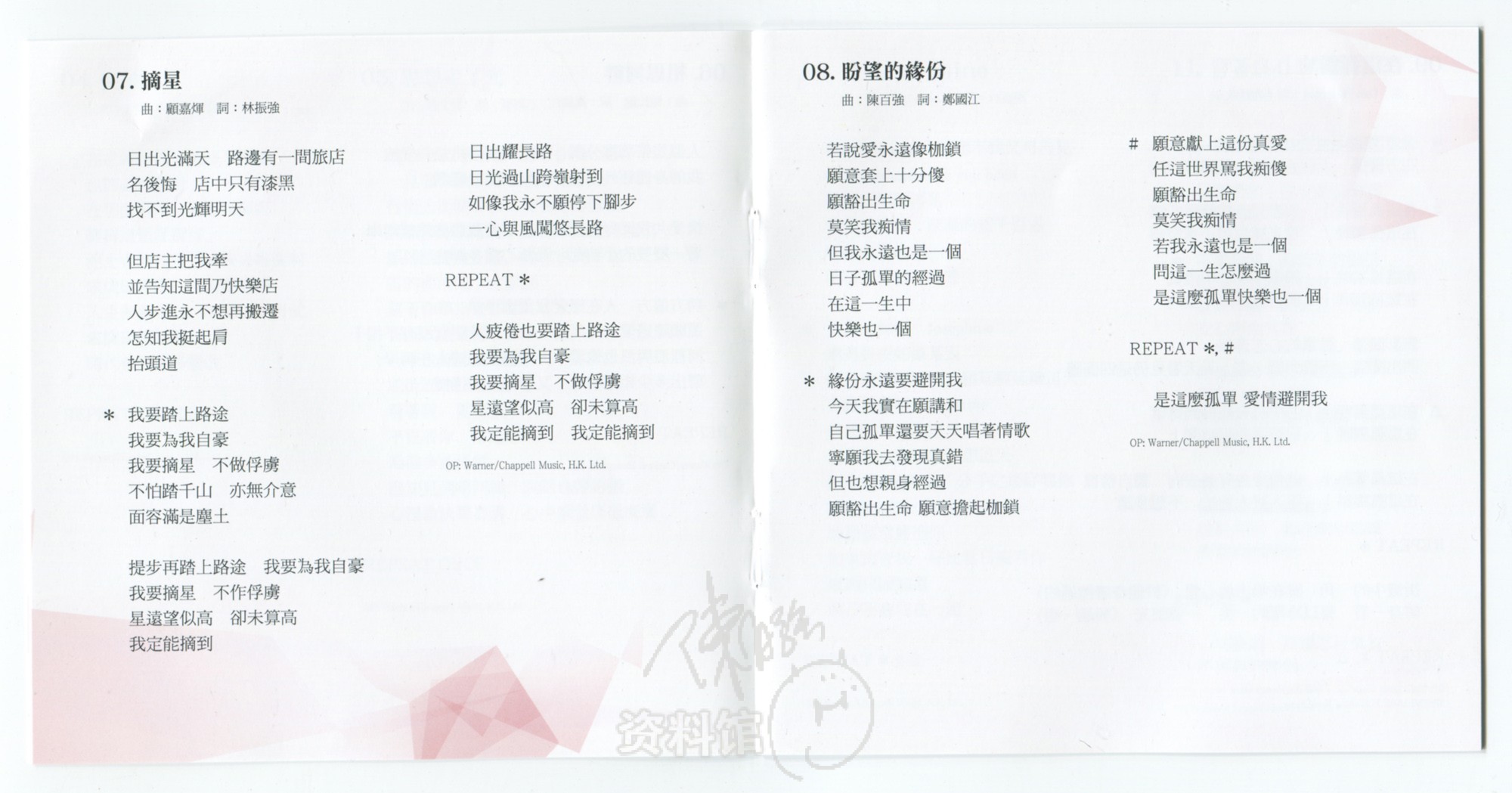7.摘星 (1984年第29、30、31周香港电台中文歌曲龙虎榜周冠军)