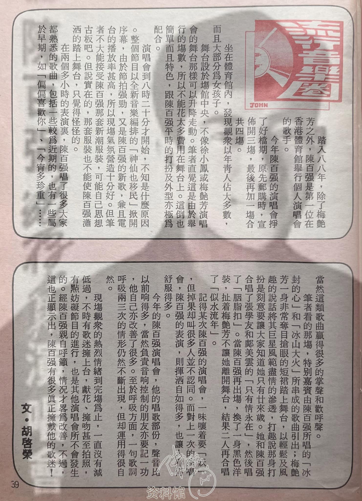 1988.04.03 胡啟榮專欄: 1988年4月3日,Danny 演唱會第三場(嘉賓梅艷芳 )