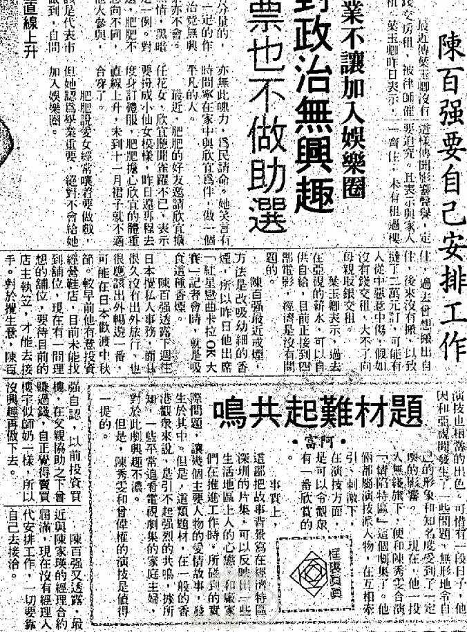 1991.09.15 陳百强要自己安排工作 華僑日報