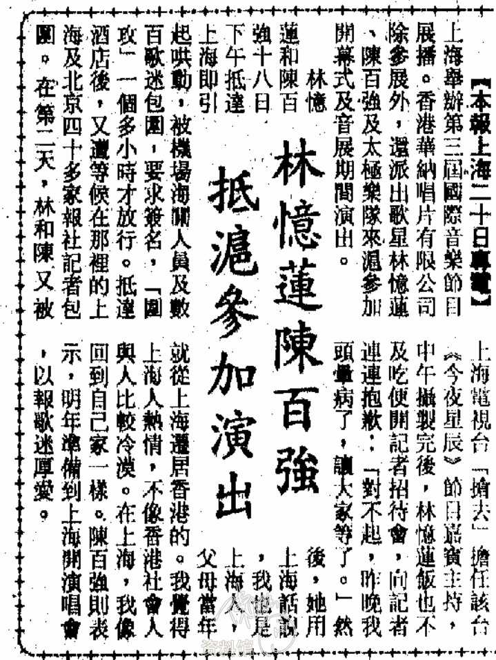 1991.10.21 林憶蓮陳百強抵滬參加演出 大公報