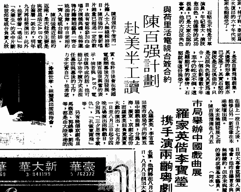 1981.07.09 與荷里活電視台簽合約 陳百強計劃赴美半工讀 香港工商日報