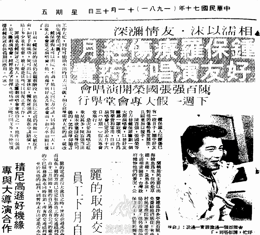 1981.11.13 鐘保羅療傷經月 好友演唱籌藥費 陳百強張國榮開演唱會 下週一假大專會堂舉行 香港工商日報