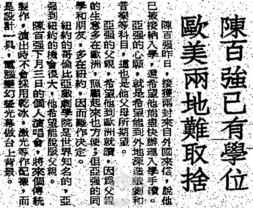 1982.06.20 陳百強已有學位,歐美兩地難取捨 華僑日報