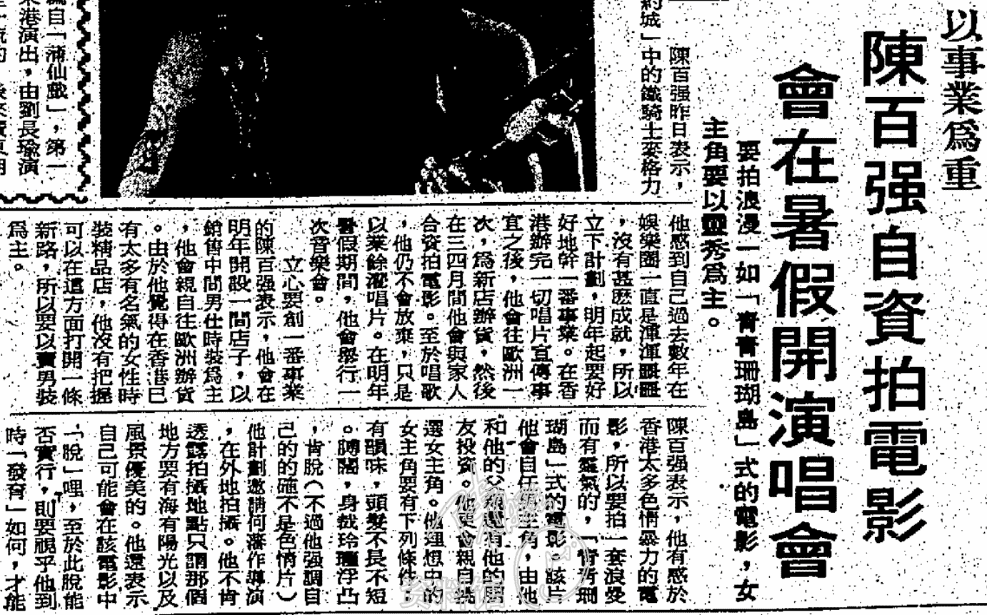 1982.12.29 陳百強自資拍電影 會在暑假開演唱會 華僑日報
