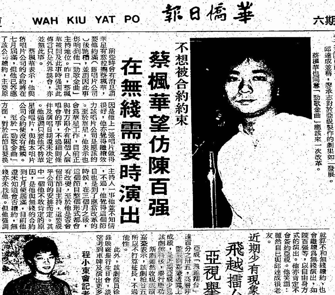 1983.04.09 不想被合約約束 蔡楓華望仿陳百強 在無綫需要時演出 華僑日報