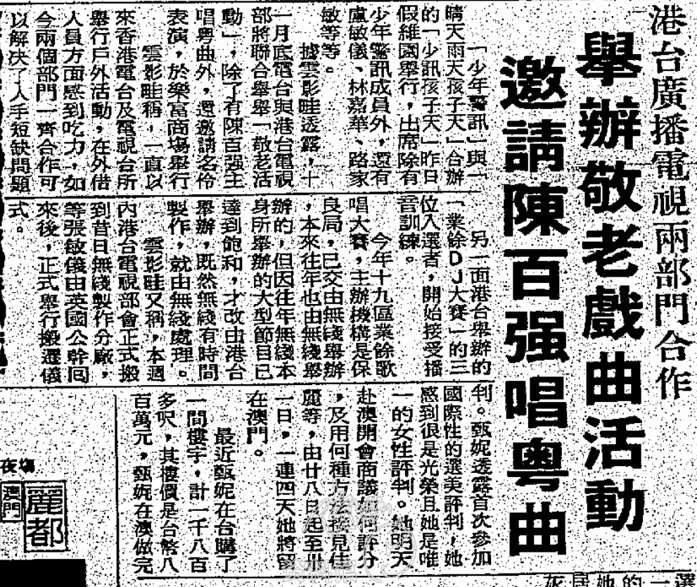 1986.10.27 舉辦敬老戲曲活動 邀請陳百強唱粵曲 華僑日報