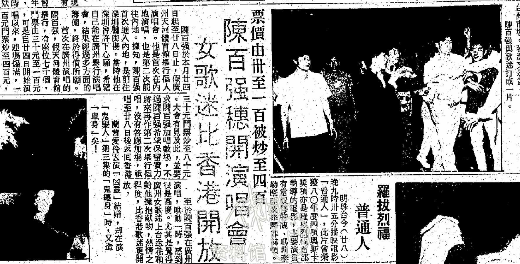 1988.10.28 票價由卅至一百被炒至四百陳百強穗開演唱會女歌迷比香港開放 華僑日報