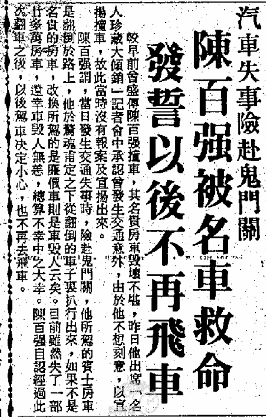 1988.01.08 汽車失事險赴鬼門關陳百強被名車救命發誓以後不再飛車 華僑日報